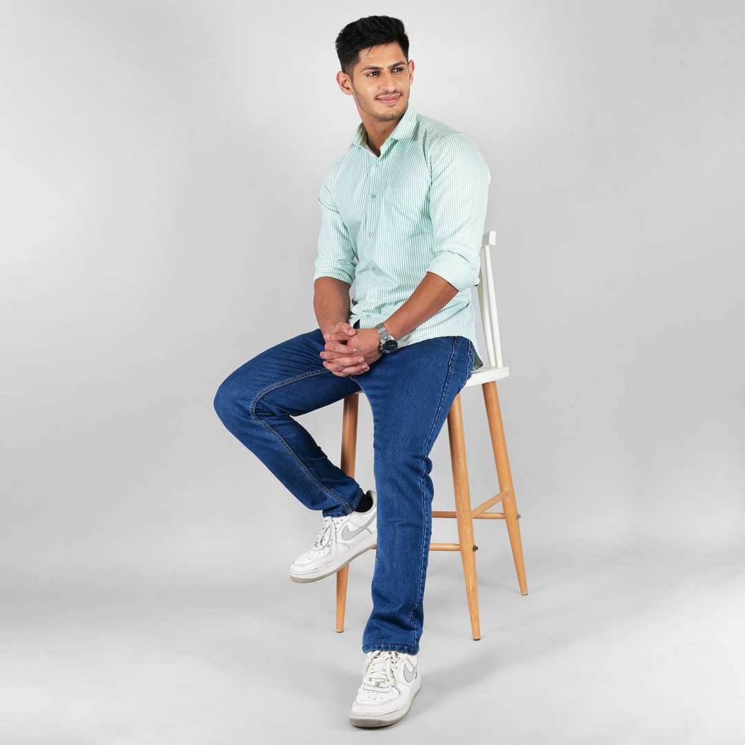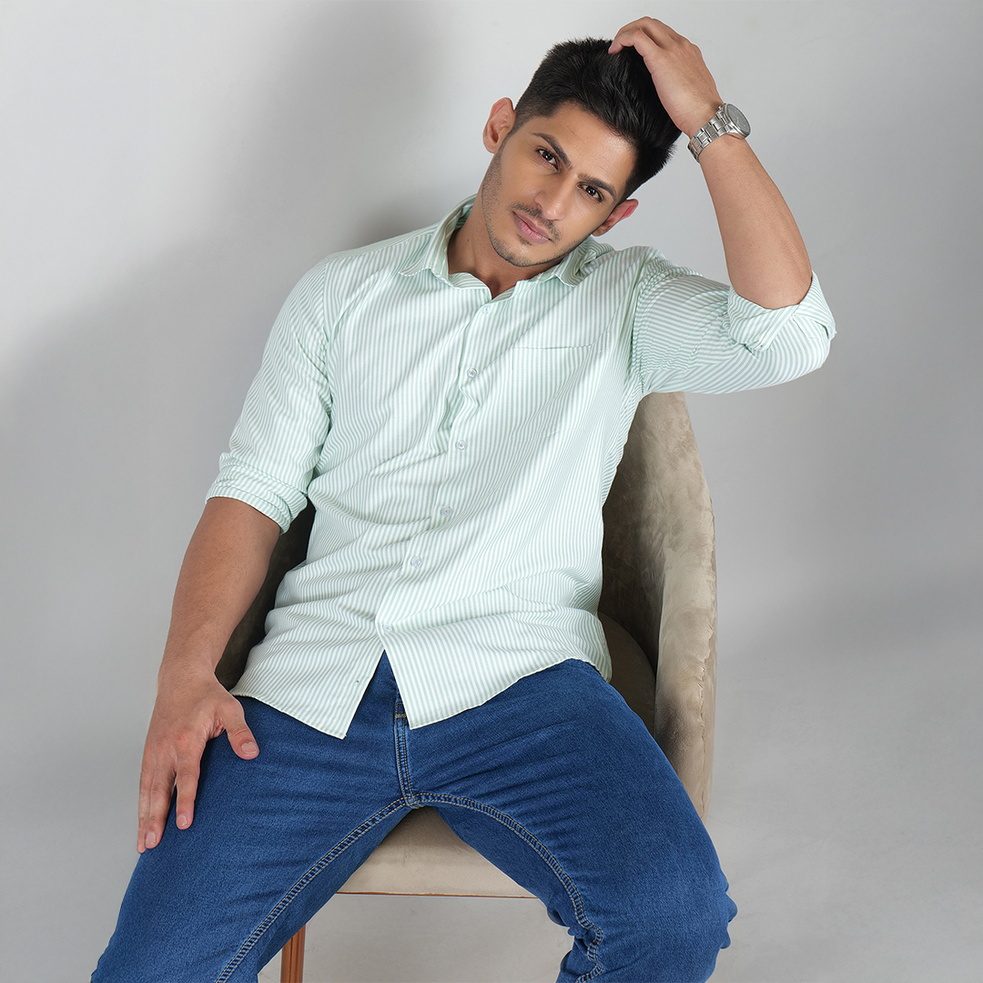 - Classic Striped Pattern with Full Sleeves & Standard Length – Designed with a refined striped pattern, full sleeves, and a standard length, this shirt is easy to tuck in for a polished professional look or wear untucked for a relaxed yet stylish appearance.
